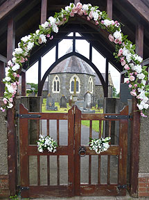 Dressing the Lynchgate or entrance to the churchyard with flowers is a way of welcoming your guests to your marriage ceremony.